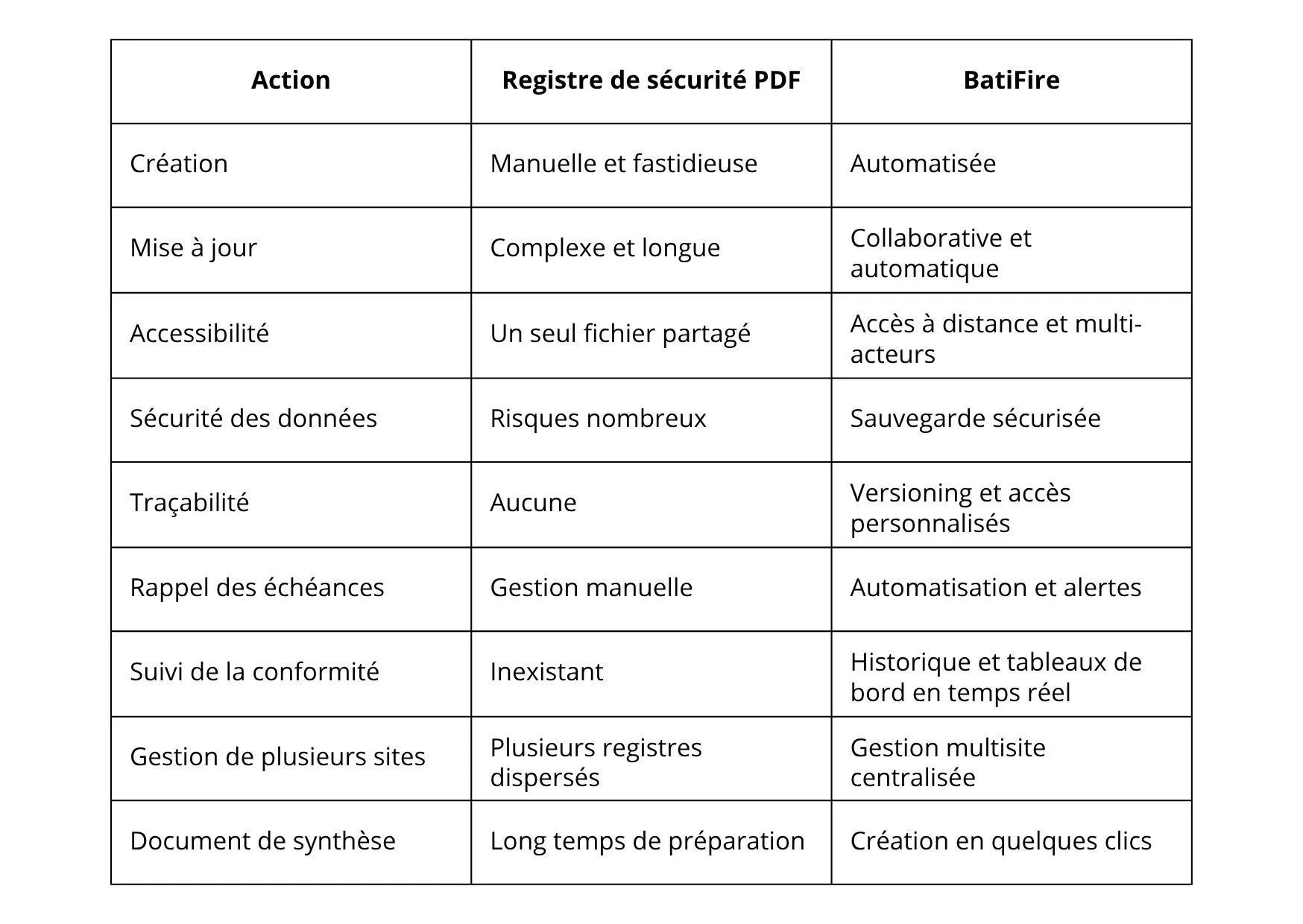 Comparatif entre BatiFire et le registre de sécurité PDF